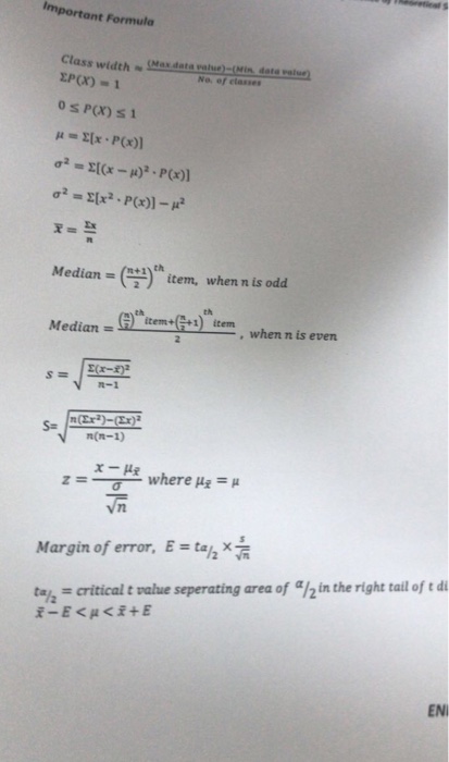 Formula Sheet 1 Formula Sheet Range Highest Number Smallest Number Class Width ୟ୬ Studocu